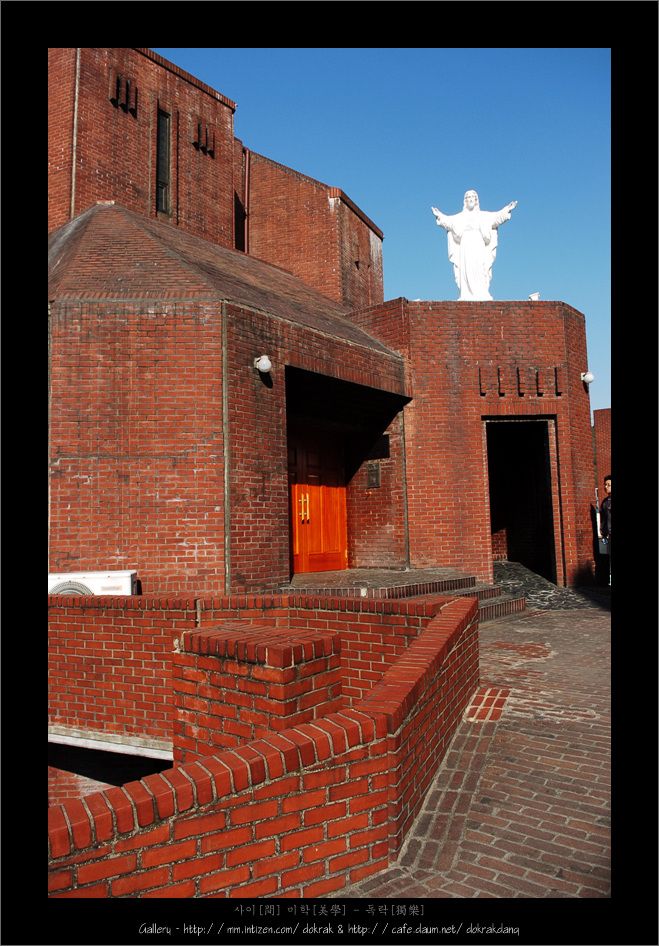 피빛 검붉은 적벽돌과 파벽돌의 구성은 종교의 숭고함 마져 느끼게 합니다.