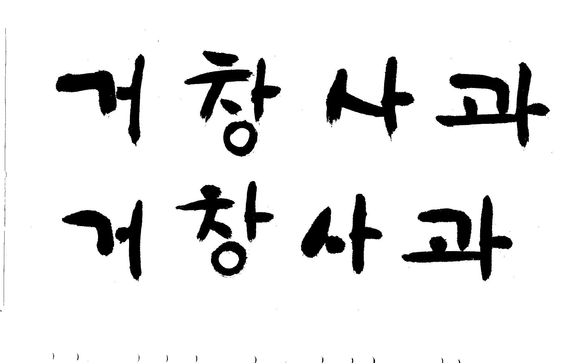 캘리 부탁드립니다. 김철호 일반 0 10381 2008.12.29 16:02 > > 안녕하세요? > 전문대 졸업하고 편집일 하다가 > 얼마전에 패키지쪽으로 이직했습니다. > '거창사과'라고 박스 디자인 주문이 왔는데요 > 일반적인 서체를 사용하니 기존 박스랑 별 차이가 없네요 > 많이 바쁘시겠지만 '거창사과' 캘리 부탁드립니다. > 유용하게 쓰시길..