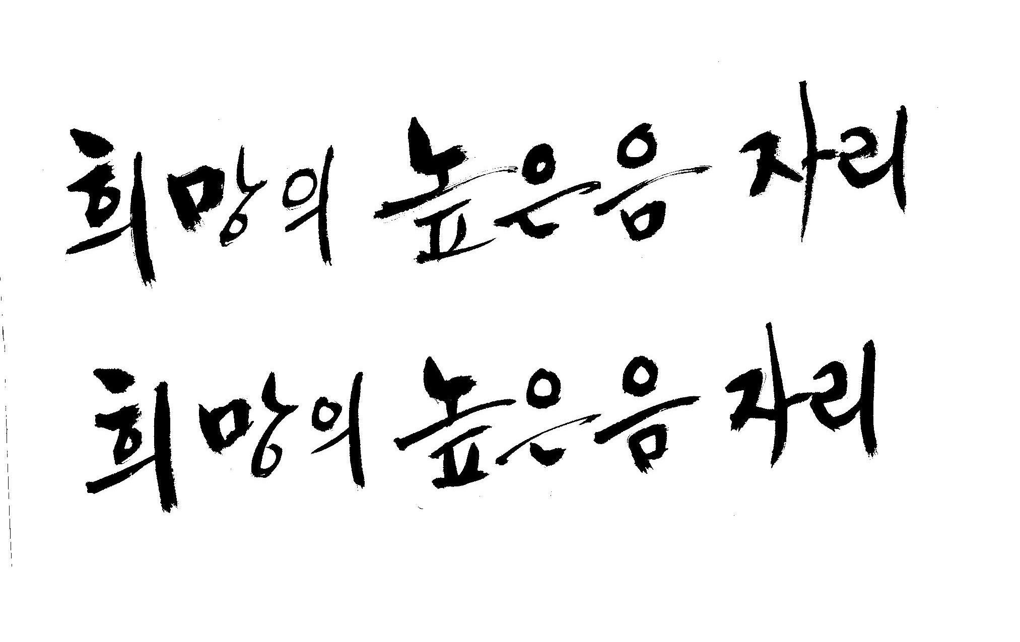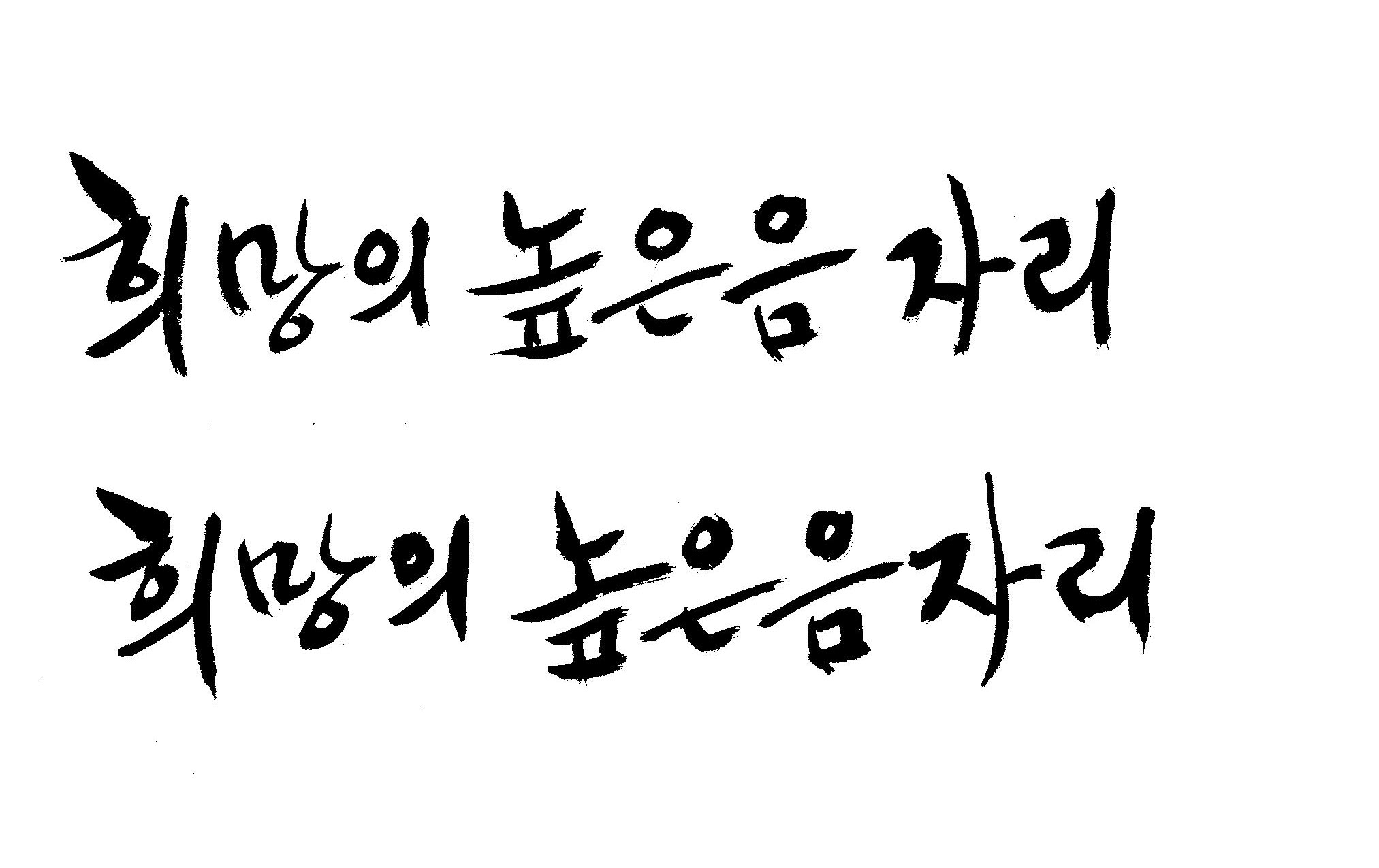 저도 캘리좀부탁이요 ^^;; 김철호 일반 0 6659 2009.01.14 10:59 > > 희망의 높은음자리 > > 감사합니다 ^^ 꼭부탁드려욧 ㅎㅎㅎ > 좋은 글이라서 신경썼는데 만족할 만큼 않나왔네요.. 유용하게 쓰시길...