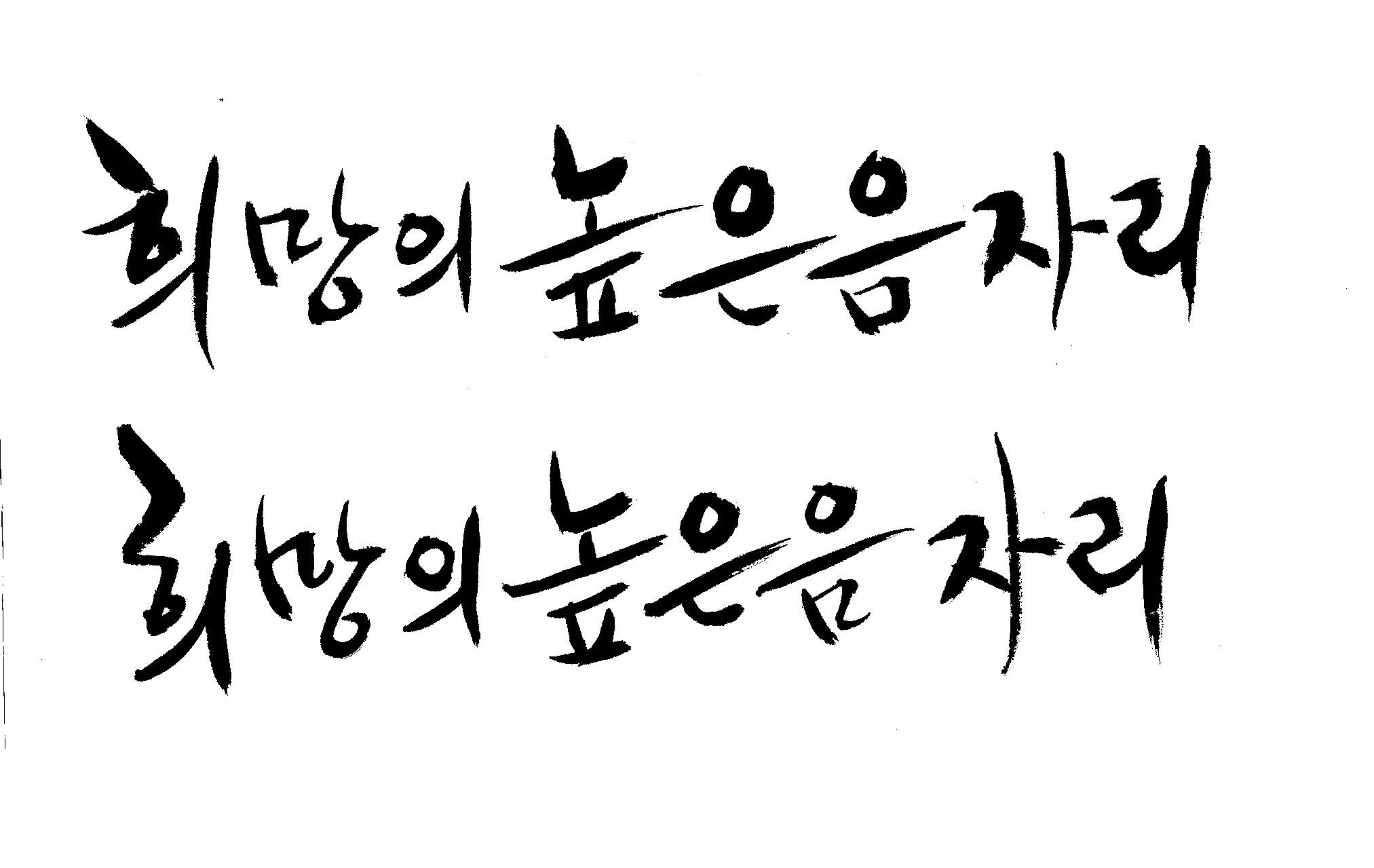 저도 캘리좀부탁이요 ^^;; 김철호 일반 0 6992 2009.01.14 10:59 > > > > > 희망의 높은음자리 > > > > 감사합니다 ^^ 꼭부탁드려욧 ㅎㅎㅎ > > > > 좋은 글이라서 신경썼는데 > 만족할 만큼 않나왔네요.. > 유용하게 쓰시길... >