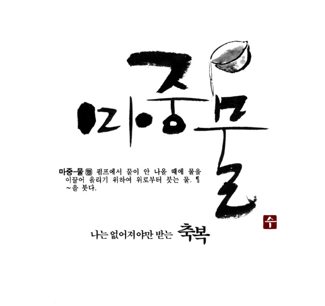 예인님 저도 캘리 부탁드려도 될까요? zenith 일반 0 5873 2009.05.11 23:19 매번 보기만 하다가 용기내서 초면에 부탁드립니다. 지역에 조그만 어머니 모임 명함에 들어갈 로고체구요 작지만 의미있는 모임이라 이쁘게 만들어 드리고 싶어서요. "마중맘"이라고 써주시면 될것 같습니다 마중물이란 순우리말에서 만드셨다고 하네요 샘플 하나 올려드리겠습니다 부탁드립니다