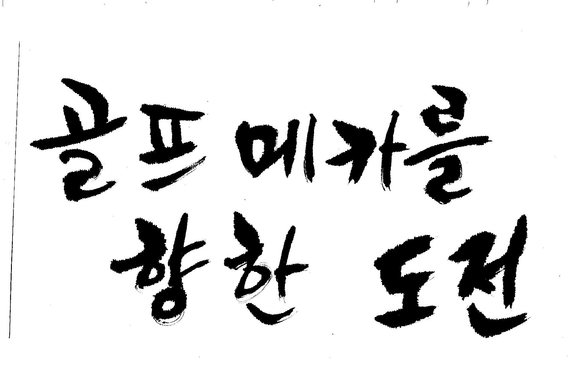 우경의 행복한 캘리세상-골프메카 김철호 일반 0 8278 2009.07.18 10:28 > > > > > > > > > 리듬감을 최대한 살리고 ㅡ 스포츠의 운동감과 밝음 > > > 기교섞인 획을 배제--일반적인 느낌 > > > 굵기변화를 통하여 도전 낱말을 강조 > > > 스타일은 비슷하지만 ...한 사람이 썼으니까 ㅎㅎㅎ > > > 서로 다른 글꼴을 올린 것은... 비교하여 보시고... > > > 편집자에게 선택권을 주는 것입니다 > > > > > >